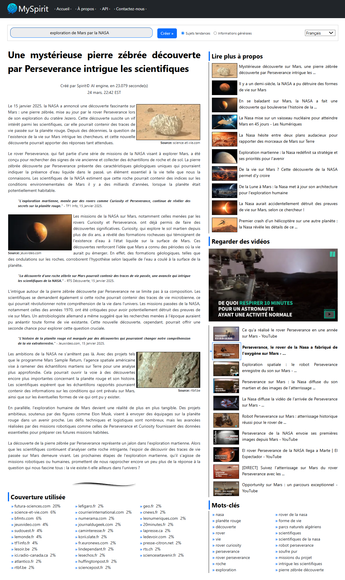 Voir ci-dessous un exemple pour le sujet "exploration de Mars par la NASA". Le résultat est vraiment impressionnant! Essayez-le!